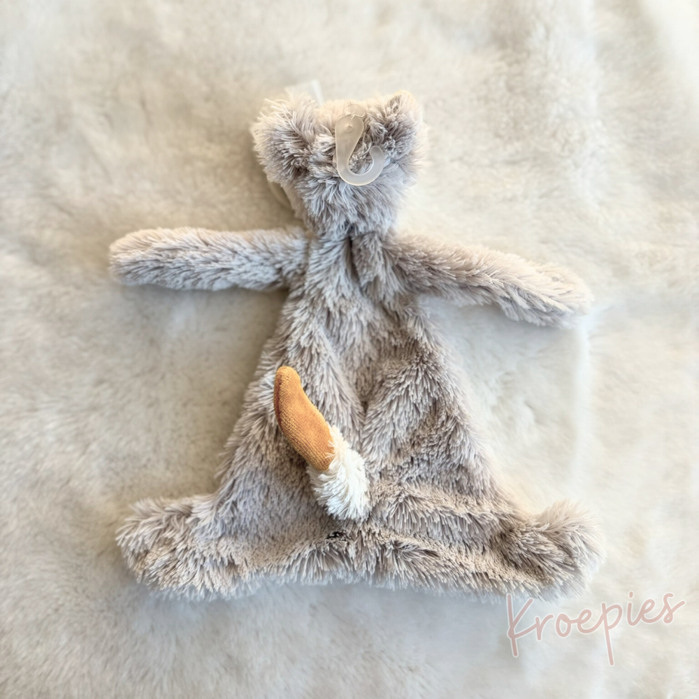 Dit Happy Horse knuffeldoekje Wolf Wayne is verkrijgbaar in de kleur grijs, gemaakt van zachte stof en klaar voor een nieuw avontuur. Sommige doekjes zijn al geliefd geweest. Andere zijn nog helemaal nieuw, soms zelfs nog met prijskaartje maar allemaal wachten ze op een warm thuis. Bij Kroepies kies je bewust voor tweedehands en duurzaam. Door te kiezen voor een tweedehands knuffeldoekje geef je niet alleen je baby of kindje iets bijzonders maar ook het doekje een tweede leven. Of je nu op zoek bent naar een vertrouwd vriendje of een unieke knuffel van een bekend merk, bij ons vind je knuffeldoekjes in allerlei kleuren en condities en altijd met zorg geselecteerd.